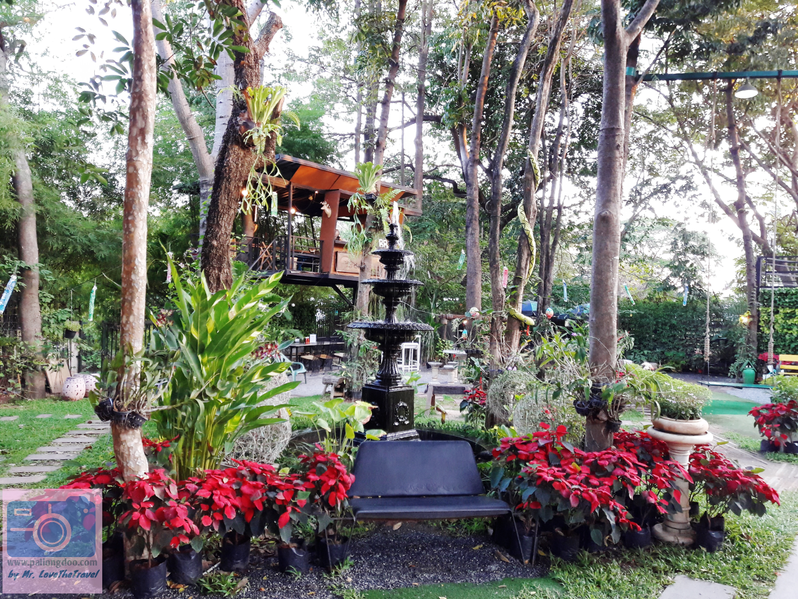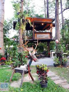 ภายในร้านบรรยากาศร่มรื่นมาก ประดับตกแต่งด้วยพันธุ์ไม้หลากหลายชนิดราวกับว่า กำลังนั่งอยู่ในป่าดงดิบ (ป่าอะเมซอล) กันเลยทีเดียว |