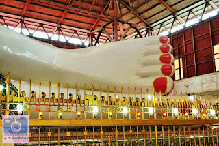 The reclining Buddha long 70 maters, the most longest in Myanmar. He is located in a big house and build by the metal and we can ensure that it will not damage to the Buddha.  More than, in the house has the free space for people come to pray and respect.