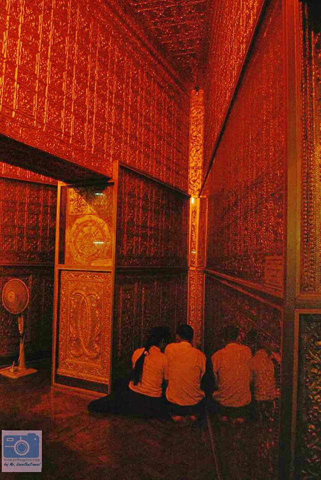ระหว่างเดินรอบองค์พระธาตุนั้นจะได้พบกับชาวพม่าที่นั่งสวดมนต์และขอพรโดยหันหน้าเข้าสู่องค์พระธาตุที่อยู่แกนกลางของอาคารแห่งนี้