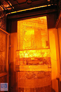 องค์พระเกศาธาตุประดิษฐานที่ศูนย์กลางของอาคาร |
