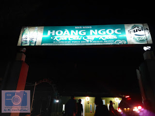 วันนี้นำเสนอร้าน Hoang Ngoc เป็นร้านอาหารทะเลที่มีชื่อเสียงของเมืองนี้ มีบรรยากาศดีและร่มรื่น แต่เป็นที่น่าเสียดายว่า ณ ขณะที่ไปยังร้านฝนตกและอากาศเย็นดังที่ได้กล่าวไว้ จึงไม่สามารถนั่งข้างนอกได้ จึงนั่งอยู่ที่ภายในห้องจัดเลี้ยงสำหรับหกทีนั่ง