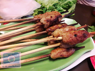 รอซักครู่แหนมลุ๋ยก็มาเป็นจาน เสียบไม้ที่ผ่านการย่างไฟมาหอมมาก แหนมลุ๋ย แปลความหมายก็คือแหนมย่างนะจ๊ะ….แหนมลุ๋ยจะถูกเสิร์ฟมาพร้อมกับผักที่ซอยหั่นเป็นชิ้นเล็กๆ รวมมาในจาน ไม่มีผักเป็นต้น เป็นใบเหมือนในไทยนะครับ