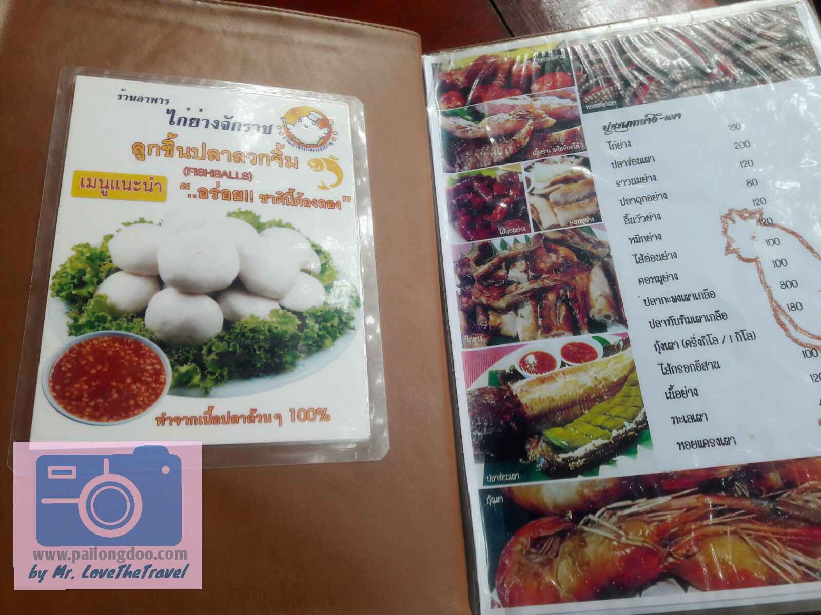 ร้านไก่ย่างจักราช มีอาหารมากมายทั้งอาหารไทยและอาหารอีสาน อาหารอีสานแท้ ๆ เช่น แกงยอดผักหวานใส่ไข่มดแดง แกงเห็ดเผาะ ก็มีด้วยน่ะ…เห็นเมนูแล้วน้ำลายไหลเลยทีเดียว เมนูดูน่ารับประทานทั้งนั้น