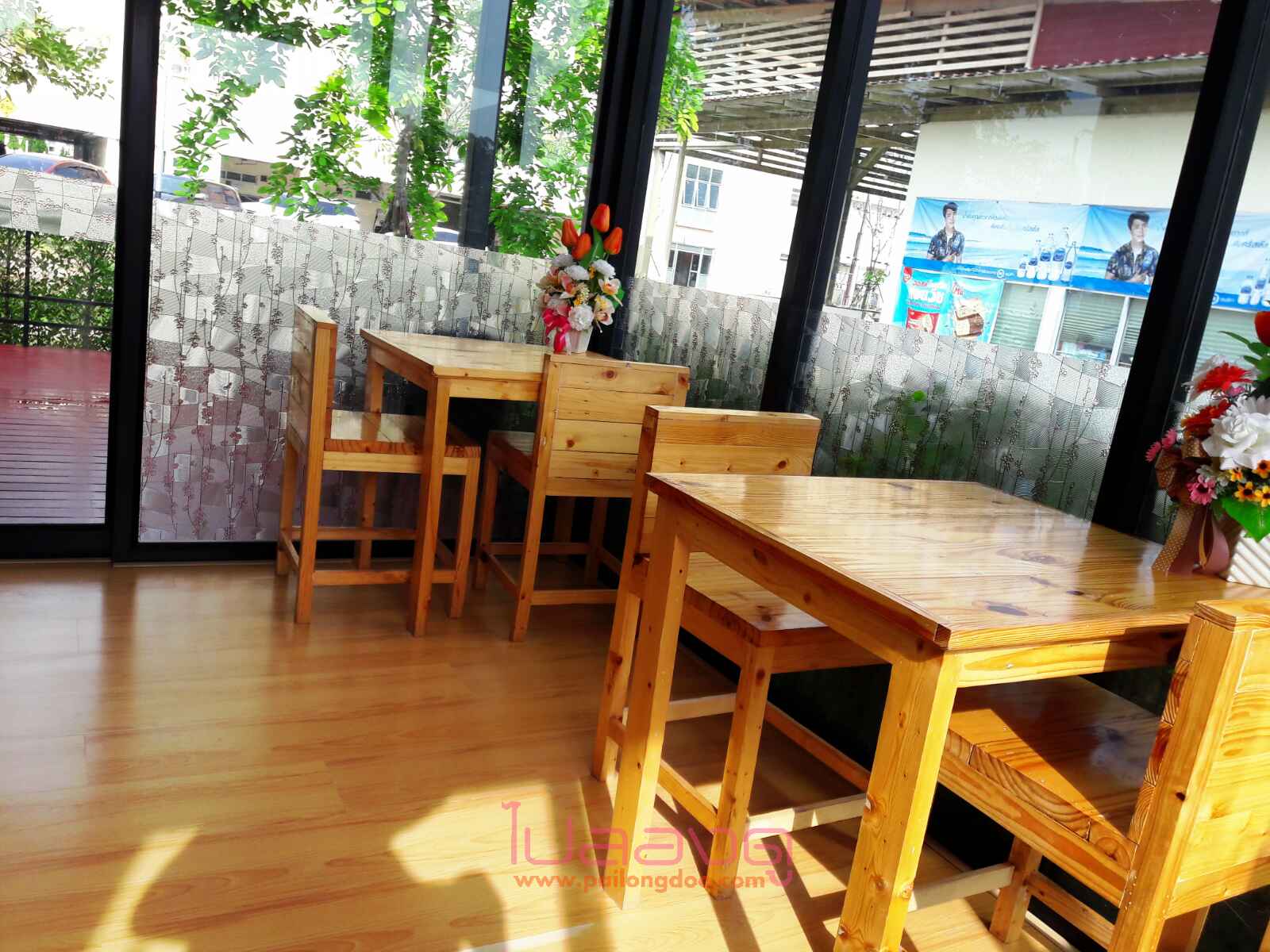 โต๊ะนั่งดื่มและทำงานภายในร้าน |