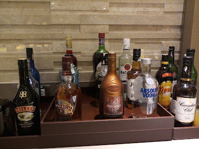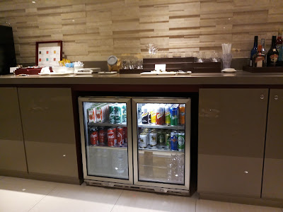 ภายในเล้าจ์มีมุมเครื่องดื่มอยู่สองจุด โดยจุดแรกเป็นจุดเดียวกับบาร์ของอาหารบุฟเฟ่ท์ และอึกจุดหนึ่งจะอยู่บริเวณห้องนั่งเล่น ส่วนที่เป็นจุดนั่งพักแบบเงียบ ๆ โดยภายในตู้จะมีเครื่องดื่มเย็น ๆ ทั้งน้ำผลไม้ เบียร์และน้ำเปล่า ไว้ให้บริการ สวนเครื่องดื่มจำพวกวิสกี้ ไวน์และแชมเปญ จะจัดเตรียมไว้ที่ภายนอกตู้เย็น โดยหากผู้โดยสารใคร่รับประทานสิ่งไดก็ต้องบริการตนเองนะจ่ะ ใคร่กิน ใคร่ตักสิ่งใด ก็ตามสบายเลย
