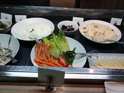 ภายในห้องพักผู้โดยสาร มีพื้นที่กว้างมาก แบ่งเป็นพื้นที่สำหรับอ่านหนังสือ ทำงาน หรือรับประทานอาหาร ชิลล์ ๆ โดยอาหารเองก็จะแบ่งออกเป็นส่วน ๆ แบบอาหารตะวันออกกลาง อาหารเอเชีย อาหารตะวันตก ของหวาน และมังสะวิรัต ต่างชนิดจะอยู่ต่างมุมกัน