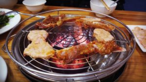 เมื่อเริ่มเข้าสู่มื้อหลัก ๆ เนื้อไก่ เนื้อแพะปิ้งย่างก็มาก็ดูน่าอร่อยเป็นอย่างมาก ปิ้งย่างหอม ๆ ทานเพลิน ๆ จากนั้นก็มีแกงขั้วไก่มาพร้อมกับเส้นขนมจีนคลาย ๆ กับขนมจีน้ำยาไก่ที่บ้านเรา เป็นอาหารที่อร่อยสุดยอดมาก ๆ