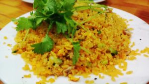 มาดูอาหารจานต่อไป เนื้อแพะย่างของทางร้าน หั่นมาเป็นชิ้น ๆ ใส่จานพร้อมทาน เอร็ดอร่อย มากมายก่ายกอง มาพร้อมกับข้าวผัดที่มีความพิเศษคือ จะผัดแบบแห้ง ๆ ไม่อมน้ำมัน อร่อยกุ๊บ ๆ มาก แบบไม่เคยเจอข้าวผัดแบบนี้มาก่อนในบ้านเรา