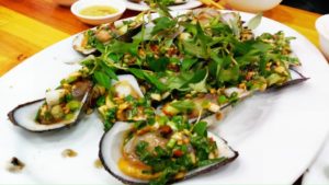 เนื่องจากเวียดนามเป็นประเทศที่ติดทะเล หากพูดเรื่องอาหารทะเลแล้ว บอกเลยว่ามีหลากหลายมาก ลาบหอยนางลม ที่หอยนางลมตัวโต ๆ ถูกโป๊ะหน้าด้วยเครื่องเทศรสชาติคล้านลาบ ก็มีความอร่อยและแปลกใหม่