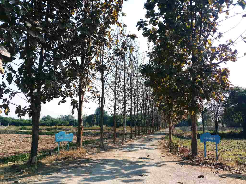 มีแปลงไม้สักพระราชทานนาม สักสยามินทร์ และมเหสักข์ ที่เติบโตเป็นแนวตามขอบถนน แต่ทว่าการไปเยี่ยมชมในช่วงฤดูหนาวต้นไม้ก็จะผลัดใบ ไม่ร่มรื่นสักเท่าไหร่