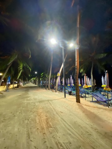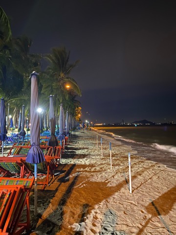 หาดบางแสนในยามเย็นจะมีความครึกครื้นไปจนเวลา 19 นาฬิกา จากนั้นผู้ค้าจะเริ่มเก็บร้าน ผู้มาเยือนก็จะเริ่มเคลื่อนย้าย และเหลือเพียงความสงบเงียบและเสียงคลื่นในยามค่ำคืน